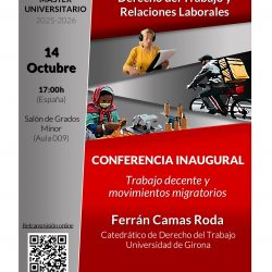 El martes 14 de octubre a partir de las 17 horas, en el aula 009 de la Facultad de Derecho, tendrá lugar la conferencia inaugural de la undécima edición del Máster Universitario en Derecho del Trabajo y Relaciones Laborales, de la Universidad de Salamanca, que correrá a cargo del profesor Ferrán Camas Roda, Catedrático de Leer másCONFERENCIA INAUGURAL[…]